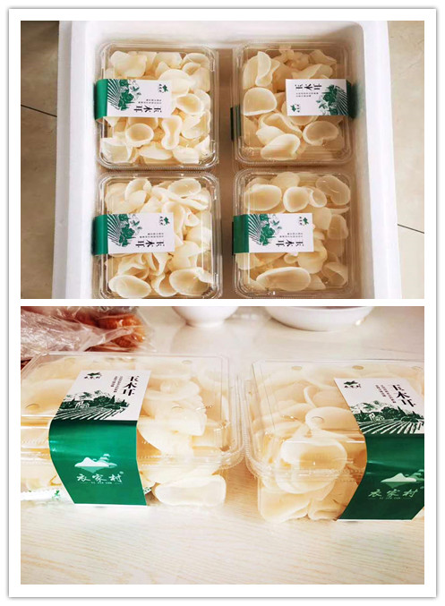煙臺棲霞市亭口鎮(zhèn)衣家村山腰間的培育大棚里,一排排一行行玉木耳形如盤狀、晶瑩剔透、如玉似脂。連日來,大棚里人頭攢動,笑語盈盈,村民們滿懷喜悅采摘玉木耳,好不熱鬧。分裝車間里也是燈火通明,如火如荼,一派繁忙景象,村民熟練地打包、裝箱,近50萬斤玉木耳正通過線上電商、線下商超一箱箱送往全國各地。